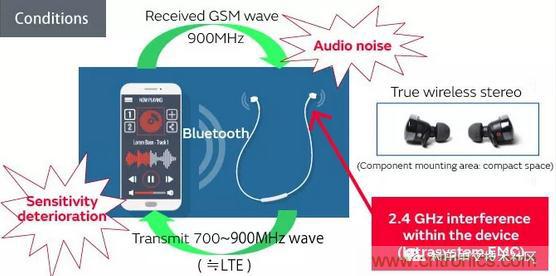 在這種情況下,我們引入了噪聲抑制的示例,其中同一電路中的噪聲干擾藍(lán)牙通信信號。該技術(shù)還可以應(yīng)用于以2.4 GHz頻率通信的非藍(lán)牙設(shè)備,我們已經(jīng)實(shí)現(xiàn)了噪聲抑制組件,這些組件在2.4 GHz的超小型x 0.4 mm x高頻范圍內(nèi)非常有效考慮到在添加組件時(shí)需要節(jié)省安裝表面積,需要0.2 mm。