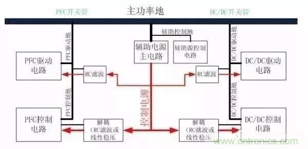 2.DC-DC部分的驅(qū)動(dòng)地和控制地接DC開關(guān)管部分的采樣地;