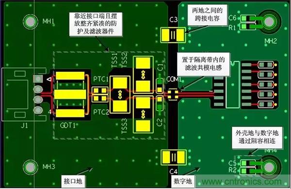 如果設(shè)備為非金屬外殼,那么接口地PGND與單板數(shù)字地GND直接電氣連接。