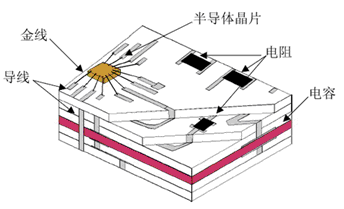 LTCC工藝流程見圖2。圖3為典型的LTCC基板示意圖,由此可知,采用LTCC工藝制作的基板具有可實(shí)現(xiàn)IC芯片封裝、內(nèi)埋置無源元件及高密度電路組裝的功能。