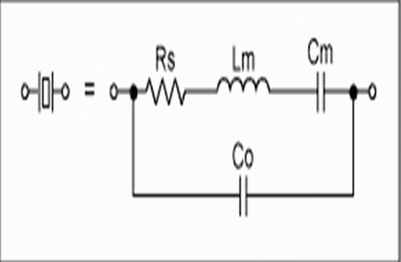 晶體的等效電路見圖1。圖中包括了動(dòng)態(tài)元件:電阻Rs、電感Lm、電容Cm和并聯(lián)電容Co。這些動(dòng)態(tài)元件決定了晶體的串聯(lián)諧振頻率和諧振器的Q值。并聯(lián)電容Co是晶體電極、管殼和引腿作用的結(jié)果。