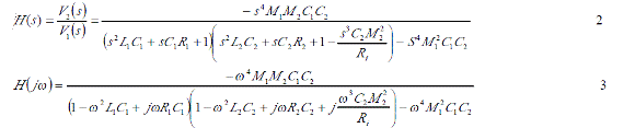 這里V1是發(fā)射信號(hào)的電壓, V2是接受信號(hào)的電壓,則測試回路的傳輸函數(shù)是由下式所決定的。