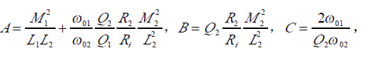 這里ω 01與ω 02(ω02》ω01)分別是由發(fā)射線圈 LC諧振回路與待測 LC諧振回路的諧振角頻率,實(shí)際應(yīng)用時(shí) Q2在100左右,而 Q1小于1。此時(shí)式3可簡化為: