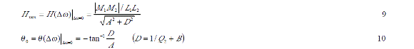 如果實(shí)際工作角頻率與待測諧振角頻率間的角頻率差 Δω控制在遠(yuǎn)小于 ω02,這樣可以無視 Δω的高次項(xiàng),式5可以作進(jìn)一步簡化。