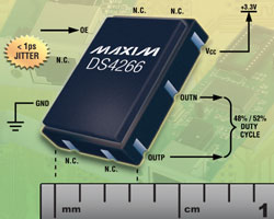 DS4266支持LVPECL和LVDS輸出。器件工作在-40°C至+85°C擴展級溫度范圍,提供節(jié)省空間的5.0mm x 3.2mm x 1.49mm、10引腳LCCC表貼陶瓷封裝。芯片起價為$4.50 (10,000片起,美國離岸價)??商峁悠芬约铀僭O計進程。