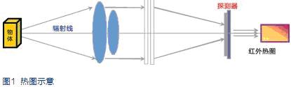 熱像儀由兩個(gè)基本部分組成:光學(xué)器件和探測器。光學(xué)器件將物體發(fā)出的紅外輻射聚集到探測器上,探測器把入射的輻射轉(zhuǎn)換成電信號(hào),進(jìn)而被處理成可見圖像,即熱圖(見圖1)。