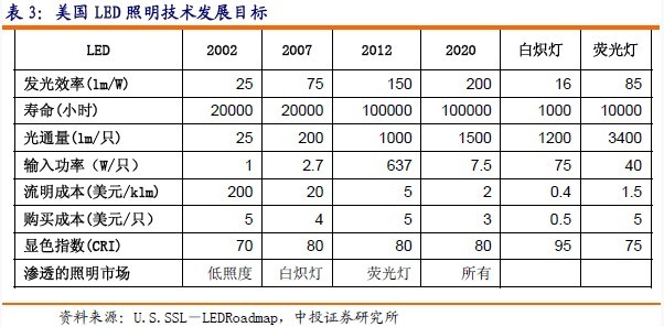 LED照明在2007年開始滲透進(jìn)入白熾燈照明市場(chǎng)、2012年進(jìn)入熒光燈照明市場(chǎng),而大量取代白熾燈和熒光燈將分別在2012年和2020年。