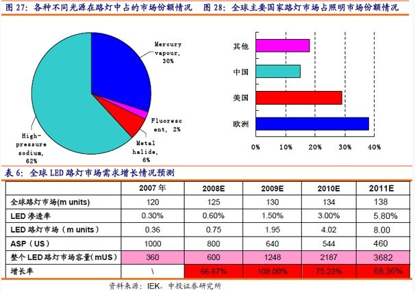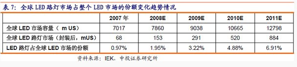 未來3-5年,LED路燈占全球LED市場(chǎng)份額將從2007年的1%上升到2011年的7%左右。