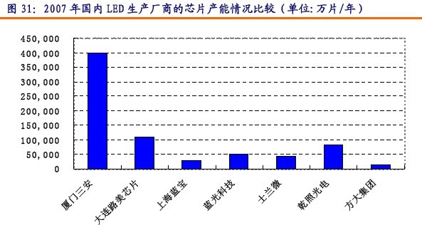 1 國(guó)內(nèi)主要LED上游企業(yè)的外延片產(chǎn)能情況比較