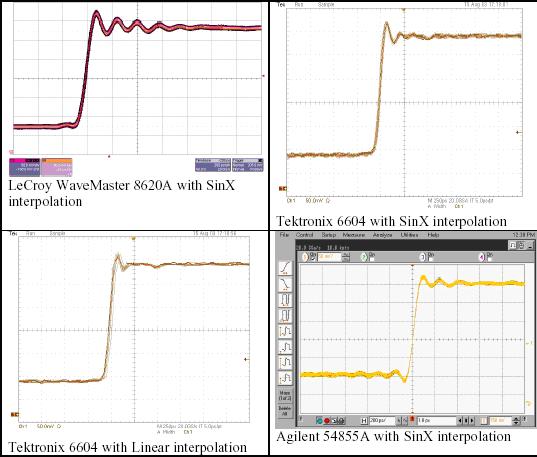 所有示波器在使用SinX內(nèi)插時都展現(xiàn)很緊的余輝曲線,與沒有內(nèi)插時生成的余輝曲線匹配。由于31 ps邊沿提供了示波器看到的任何邊沿中最大的頻率成分,這一結(jié)果表明對所有示波器,SinX內(nèi)插在20 GS/s的最大采樣率時最有效,而不管應(yīng)用的信號如何。