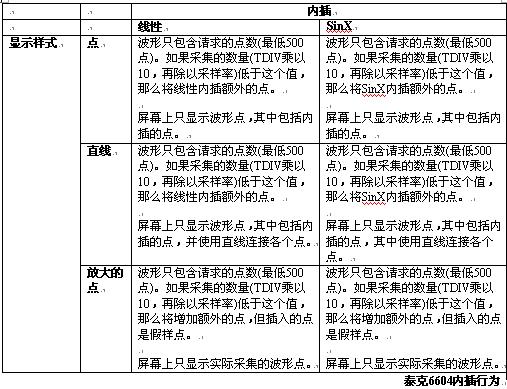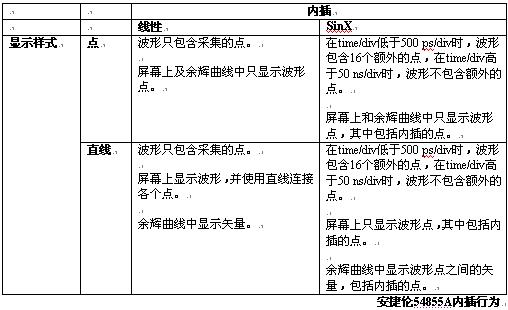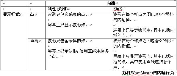 下表詳細介紹了在WaveMaster上怎樣應(yīng)用內(nèi)插及怎樣顯示波形的規(guī)則。