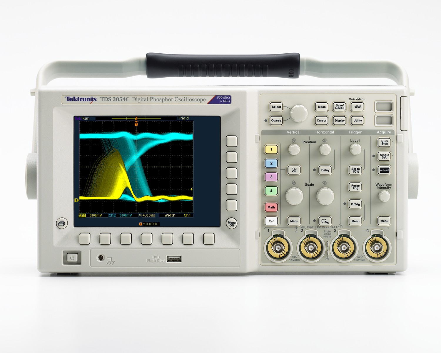 TDS3000C示波器使得包括數(shù)字設計人員、制造商、服務和維修技術人員在內(nèi)的各類用戶以經(jīng)濟的價格獲得DPO的信號采集和分析功能。DPO技術每秒采集數(shù)千個波形,并使用輝度等級來表明信號事件的發(fā)生頻率。發(fā)生頻次高的事件亮度要高于偶發(fā)事件,因此可以輕松區(qū)分毛刺、瞬態(tài)信號和調(diào)制。TDS3000C擁有全分辨率VGA顯示器,所以即使微小的細節(jié)也能清楚顯示。一旦用戶看到異常信號,他們可以使用高級毛刺觸發(fā)、欠幅脈沖觸發(fā)、脈沖觸發(fā)或轉(zhuǎn)換速率觸發(fā)功能,簡便地進一步查看信號。選配的軟件模塊提供了可擴充的解決方案,支持極限測試、高級通道數(shù)學運算、電信模板測試和HDTV視頻等應用。此外,TDS3000C包括e*Scope內(nèi)置網(wǎng)頁服務器、WaveAlert異常波形自動檢測軟件和一個前面板USB端口,可以把數(shù)據(jù)和儀器設置保存到記憶棒。