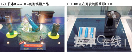 為了高效利用能源,EDLC重新獲得了重視。日本Chemi-Con展出了面向汽車的85℃型號(hào)開(kāi)發(fā)品(a)。TDK參考展出了該公司首款大型圓筒形EDLC(b)。[page]