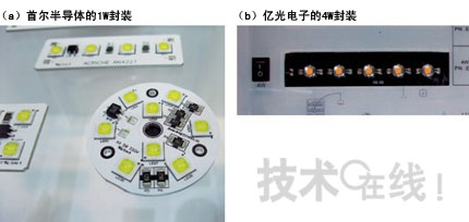 臺(tái)灣億光電子(Everlight Electronics)展出了其首款交流驅(qū)動(dòng)封裝產(chǎn)品——功耗為1W和4W的樣品。這款封裝產(chǎn)品著眼于照明用途,首先將在臺(tái)灣和中國(guó)大陸上市。與上屆一樣,三墾電氣仍然展出了小型封裝產(chǎn)品。由于發(fā)光效率較低,設(shè)想的是電源分接頭等指示用途。