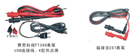 福祿克287的鱷魚(yú)夾手感好很多,比對(duì)手檔次高。費(fèi)思FT368的表筆很實(shí)用和高檔,可以在其擴(kuò)展接口上插測(cè)試線。另外費(fèi)思FT368的K型熱點(diǎn)偶很正點(diǎn),價(jià)值不菲。