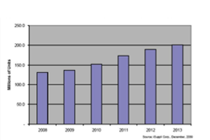 相對于2009年出貨量可能持平甚至下降的其他電子產(chǎn)品,例如2009年GPS便攜式導(dǎo)航設(shè)備市場可能會收縮0.7%,估計達4.2%的機頂盒市場年增長率可以說相對健康。對于未來,iSuppli公司仍認為機頂盒市場將繼續(xù)穩(wěn)步增長,2008-2013年的復(fù)合年增長率將達8.9%。