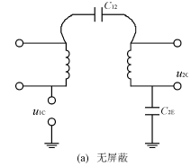 在圖1(a)中,隔離變壓器不加屏蔽層,C12是一次繞組和二次繞組之間的分布電容,在共模電壓u1C的作用下,二次繞組所耦合的共模噪聲電壓為u2C,C2E是二次側(cè)的對地電容,則從圖可知二次側(cè)的共模噪聲電壓u2C為: