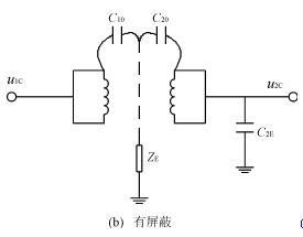 由于C2是屏蔽層的對地阻抗,在低頻范圍內(nèi),ZE《(1/jωC10),所以u2C→0。由此可見,采取屏蔽措施后,通過隔離變壓器的共模噪聲電壓被大大地削弱了。