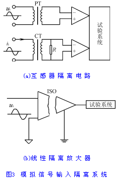 高電壓、大電流信號采用互感器隔離,其抑制噪聲的原理與隔離變壓器類似,這里不再贅述。互感器隔離的應(yīng)用如圖3(a)所示。
