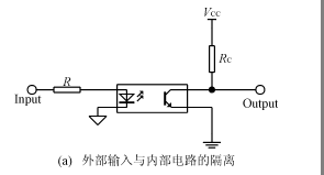 這種隔離方法是用光電耦合器把輸入信號與內(nèi)部電路隔離開來,或者是把內(nèi)部輸出信號與外部電路隔離開來,如圖4(a)、(b)所示。