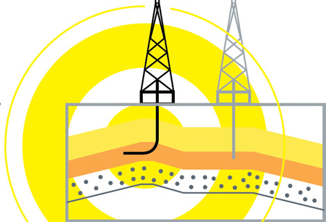 在深達(dá)大約3000多米的巖層之下,蘊(yùn)藏著數(shù)萬億立方英尺的天然氣,但普通的鉆井根本無法鉆取。解決辦法是沿著巖層進(jìn)行水平鉆探,即首先鉆出垂直鉆井,到 達(dá)天然氣層后再90度大轉(zhuǎn)彎實(shí)施水平鉆探。目前這只是個(gè)技術(shù)的概念。但美國(guó)第三大天然氣生產(chǎn)商切薩皮克能源公司計(jì)劃到2010年底將水平鉆井?dāng)?shù)量提高到 40個(gè)。