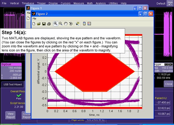 根據(jù)選擇好的測(cè)試項(xiàng)目,QualiPHY隨即展開一系列自動(dòng)化測(cè)試過程:自動(dòng)設(shè)置示波器工作參數(shù)包括采樣率、存儲(chǔ)深度、采集時(shí)間、縱軸刻度、觸發(fā)電平等;自動(dòng)定義測(cè)量參數(shù);自動(dòng)調(diào)用第三方軟件如Matlab對(duì)波形運(yùn)算,自動(dòng)分析波形和測(cè)量結(jié)果,自動(dòng)輸出分析結(jié)果,整個(gè)測(cè)試過程完全是自動(dòng)化的,無需任何人工干預(yù)。在測(cè)試過程中會(huì)同步顯示測(cè)試狀態(tài)和過程提示。