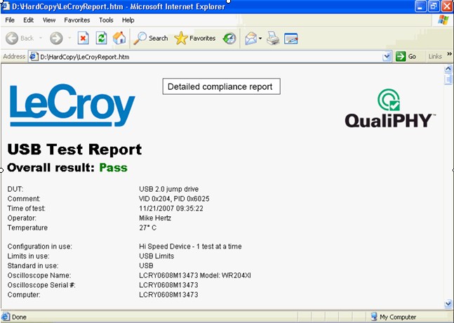 圖7 QualiPHY軟件自動(dòng)生成USB2.0一致性測(cè)試報(bào)告