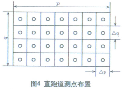 1) 四點(diǎn)法:把同一側(cè)兩燈柱間的測量路段分成若干個大小相等的矩形網(wǎng)格,把測點(diǎn)設(shè)置在每個矩形網(wǎng)格的四角,圖7為四點(diǎn)法布點(diǎn)時(shí)的測點(diǎn)布置圖。