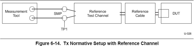 在USB3.0的TX的眼圖和抖動(dòng)測(cè)試中,測(cè)量的是待測(cè)試信號(hào)經(jīng)過(guò)參考測(cè)試信道后TP1點(diǎn)的眼圖和抖動(dòng)。如圖5中的Reference test channel即為參考測(cè)試信道,在規(guī)范中定義了long channel、short channel和3米電纜三種參考測(cè)試信道。如果使用long channel或者較長(zhǎng)電纜,信號(hào)到達(dá)接收端時(shí)衰減比較大,眼圖已經(jīng)閉合,USB3.0芯片接收端使用了CTLE均衡器對(duì)信號(hào)進(jìn)行均衡后,信號(hào)眼圖的質(zhì)量將大大改善,所以要求測(cè)試儀器分析出CTLE均衡器處理后信號(hào)的眼圖和抖動(dòng)。目前業(yè)界常用的是Intel的11英寸背板和3米USB電纜作為參考信道。