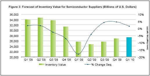 - 09年第四季度,全球所有半導(dǎo)體供應(yīng)商的庫(kù)存合計(jì)為268億美元