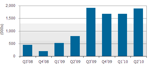 - 與2008年95萬(wàn)片比較成長(zhǎng)幅度高達(dá)417%