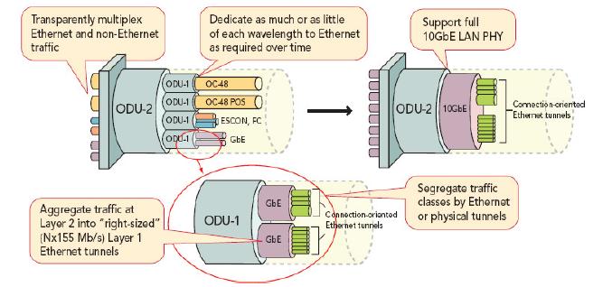 圖3.客戶(hù)側(cè)匯集的各種協(xié)議使得OTN成為高性?xún)r(jià)比通用基本結(jié)構(gòu)