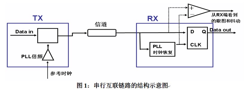 從整個(gè)鏈路的組成來(lái)看,發(fā)送器參考時(shí)鐘的抖動(dòng)在串并轉(zhuǎn)換時(shí)就引入到整個(gè)鏈路中,影響著TX端發(fā)送出的數(shù)據(jù)的抖動(dòng),而接收器要從這些數(shù)據(jù)中恢復(fù)出時(shí)鐘來(lái)進(jìn)行后續(xù)的處理??梢钥闯霭l(fā)送器參考時(shí)鐘的性能對(duì)整個(gè)鏈路的性能起到很關(guān)鍵的作用。本文從時(shí)鐘抖動(dòng)的相關(guān)概念、測(cè)試實(shí)例、測(cè)試注意事項(xiàng)、測(cè)試難點(diǎn)幾方面對(duì)時(shí)鐘抖動(dòng)測(cè)試進(jìn)行分析和探討。