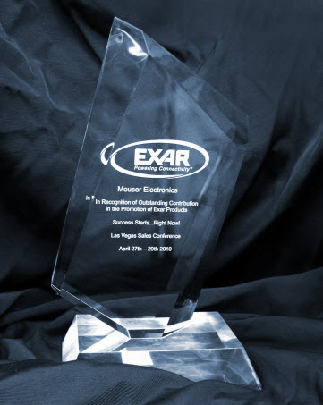 在2010年4月拉斯維加斯召開的Exar銷售大會上,Exar 為表彰在Exar產(chǎn)品宣傳中的杰出貢獻向Mouser Electronics頒發(fā)杰出貢獻獎。Mouser獲此殊榮的理由是其成功地在過去的16個月內(nèi)保持每月的銷售量都有巨大的增長。 Mouser同時還通過網(wǎng)絡(luò)和目錄營銷手段向數(shù)千名新客戶推介Exar的電源管理擴展陣列,通信以及接口硅晶解決方案。