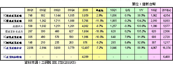 2010年第一季度臺灣IC產(chǎn)業(yè)產(chǎn)值統(tǒng)計與預估
