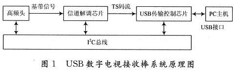 USB數字電視接收棒系統(tǒng)主要有以下4個模塊構成,如圖1為系統(tǒng)的原理圖。