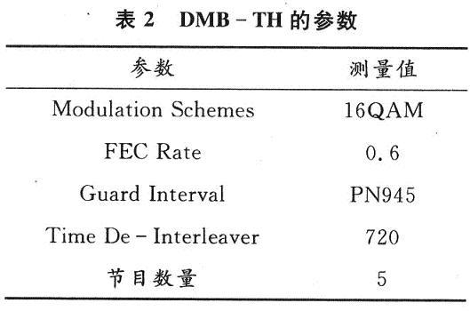 在完成了USB數字電視接收棒的系統(tǒng)總體方案設計之后,根據所選用的芯片,參照相應技術手冊,設計了電路原理圖并制作了印刷電路板。在硬件制作期間,同時進行軟件的開發(fā)工作。在硬件制作完成后,利用KEILC和VC6++進行了調試。利用筆記本電腦在室內和運動狀態(tài)下分別進行了長時間(12h)測試,USB端口接收數據的速度穩(wěn)定在1.8MB/s。測得廈門地區(qū)國標DMB-TH數字電視的參數見表2。