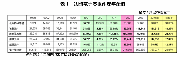 - 預(yù)估2010年第二季我國電子零組件產(chǎn)值將達(dá)新臺幣2,197億元