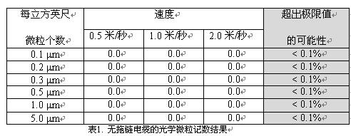 表2.裝有高柔性扁平電纜的電纜拖鏈A在每個測量點產(chǎn)生0個微粒