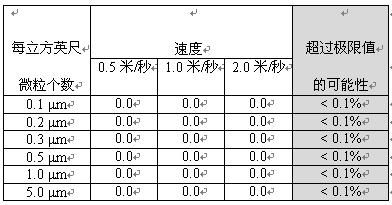 每個電纜拖鏈垂直放置,與潔凈室的空氣流動方向相對應,以確保產(chǎn)生的所有微粒都被記錄下來。先確定最有可能產(chǎn)生集塵的電纜拖鏈的關鍵地方,光學微粒記數(shù)器放置在每根電纜的這些區(qū)域的三個位置(見圖1)。每個記數(shù)器會記錄0.1至5.0微米大小的微粒。在每個測量點對產(chǎn)生的懸浮微粒作100分鐘記錄,每根電纜分別在運行速度0.5米/秒、1.0米/秒、2.0米/秒作測試。