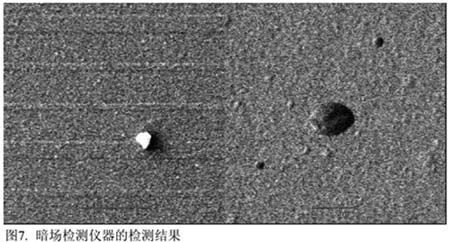 由于暗場檢測儀器的接受的更多的信號(hào)源都是有一定角度的,所以這種檢測設(shè)備會(huì)對(duì)晶圓的表面更敏感。所以在對(duì)通孔刻蝕后晶圓進(jìn)行檢測結(jié)果來看,能抓到更多的是表面的微粒以及通孔刻蝕過程中的聚合物殘留。所以暗場檢測儀器在對(duì)通孔刻蝕檢測結(jié)果不盡如人意,它只能對(duì)通孔刻蝕過程后芯片表面的殘留進(jìn)行有效的檢測,可是對(duì)于通孔刻蝕狀態(tài)沒法完全反映(如圖7所示)。
