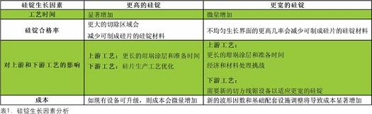 最后,如果硅錠生長和線切割操作之間的生產(chǎn)線平衡無法維持,總體硅片生產(chǎn)力也會下降。生產(chǎn)更多可制成硅片的硅錠材料可能會增加生產(chǎn)能力和爐子的利用率,但如果線切割操作無法處理增加后的材料或波形因數(shù),就可能會出現(xiàn)在制品(WIP)瓶頸或降低線鋸利用率,從而導(dǎo)致硅片生產(chǎn)運營的總體生產(chǎn)力下降。影響硅錠生長的因素分析見表1。