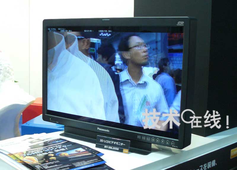 松下的3D液晶顯示器畫面尺寸為25.5英寸,像素為1920×1200。預定近期上市,價格為100萬8000日元。支持隔行交互配置左眼及右眼用影像信號的“Line-By-Line方式”、分兩條信號線發(fā)送左眼及右眼用影像信號的“Simul方式”、以及將左眼及右眼用影像信號只在水平方向壓縮至1/2左右配置的“Side-By-Side方式”。預定2010年秋季上市采用120Hz驅動PDP及液晶快門配備型眼鏡、支持“Frame Sequencial方式”的3D顯示器。
