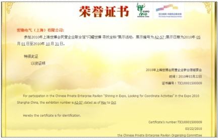 在2010世博會開幕之際,密勒電氣(上海)有限公司通過世博會企業(yè)聯(lián)合館“閃耀世博 尋找坐標(biāo)”官方審核,名字被刻入館內(nèi)水晶展示墻,充分體現(xiàn)了密勒的積累百年的實力和影響力。