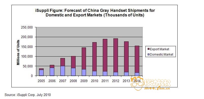 在政府打壓下,6月的山寨手機(Gray Handset)出貨量呈現(xiàn)下降趨勢,對部份國內(nèi)供貨商造成了不利影響,iSuppli數(shù)據(jù)顯示,自07年起,山寨手機(Gray Handset)出貨量雖然在不斷的提高,但是國內(nèi)市場的出貨量確一直的下降,一方面來至政府的打壓,另外方面由于國內(nèi)市場競爭過于激烈。