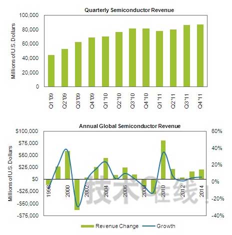 iSuppli從正面否定了對(duì)于此次快速增長所擔(dān)心的“泡沫”和“二次探底”。關(guān)于泡沫問題,有觀點(diǎn)認(rèn)為,此前曾創(chuàng)下歷史最高增長率的2000年出現(xiàn)了需求泡沫,所以此次的增長會(huì)不會(huì)也是泡沫。但是,iSuppli指出,2000年的增長是繼1999年經(jīng)濟(jì)繁榮之后的產(chǎn)物,而此次增長的背景卻是經(jīng)濟(jì)形勢(shì)從2009年以前的經(jīng)濟(jì)低迷期開始的復(fù)蘇,因此這兩種情況“在循環(huán)本質(zhì)上完全不同”。關(guān)于二次探底,iSuppli高級(jí)副總裁戴利·福特(Dale Ford)表示,“我不同意二次探底將要到來的觀點(diǎn)”。他認(rèn)為,從2010年下半年開始,2010年半導(dǎo)體市場將恢復(fù)到通常模式。也就是說,2010年第二季度將環(huán)比增加8.2%,達(dá)到峰值,第三季度將環(huán)比增加6.7%、第四季度將環(huán)比增加0.4%,出現(xiàn)減速,進(jìn)入2011年后,由于通常的季節(jié)因素,將轉(zhuǎn)為環(huán)比負(fù)增長。iSuppli預(yù)測(cè),回到這種標(biāo)準(zhǔn)增長模式后,2011年的半導(dǎo)體市場將增長7%。