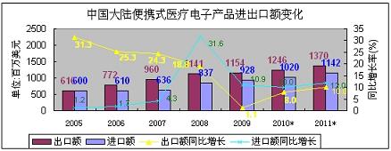 - 便攜式醫(yī)療電子產(chǎn)品出口額略大于進口