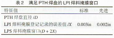 LDI對焊料掩膜窗口的潛在影響在表2中所示。制造廠商所能實現(xiàn)的最小液體可成像(LiquidPhotoima8eable,簡稱LPI)焊料掩膜允許誤差(x)是因為多層層壓板的影響導(dǎo)致材料移動,由于鍍覆和烘干的影響導(dǎo)致材料尺寸的變動以及由于環(huán)境的變化導(dǎo)致在成像l工藝過程中變化的共同作用而產(chǎn)生的。對于焊料掩膜成像的后期是綜合的,因為常規(guī)的焊料掩膜成像要花費較長的時間(20s~40s),