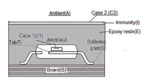 不過,式(4)成立還需要滿足以下條件:這個(gè)產(chǎn)品只有一個(gè)熱點(diǎn)(hotpoints)或者多個(gè)熱點(diǎn)(hotpoints)之間的熱傳導(dǎo)造成的影響很小或者可以忽略不計(jì);該功率器件的熱量只參與向上或者向下傳遞,而不考慮其他方向即滿足2R法。