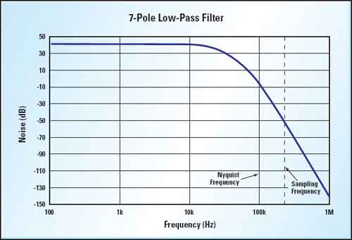 我們最好采用125倍的增益,以便多留一點(diǎn)余量。以40kHz這個(gè)最高信號頻率為例,取樣率便成為一個(gè)令人擔(dān)憂的問題。為免高于尼奎斯特頻率的混疊信號頻率,我們必須將取樣頻率的一半加以濾波,然后將振幅抑制至模擬/數(shù)字轉(zhuǎn)換器的1LSB以下。在這個(gè)例子中,我們所采用的是12位的模擬/數(shù)字轉(zhuǎn)換器,其參考電壓為4.096V,將得到1mV解析度,計(jì)算方法如下: